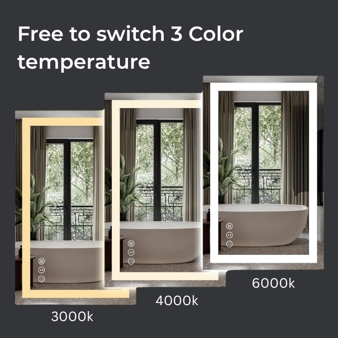 - Touch Sensor Interface: Fresh, sanitary controls integrated directly into the mirror for a clean experience